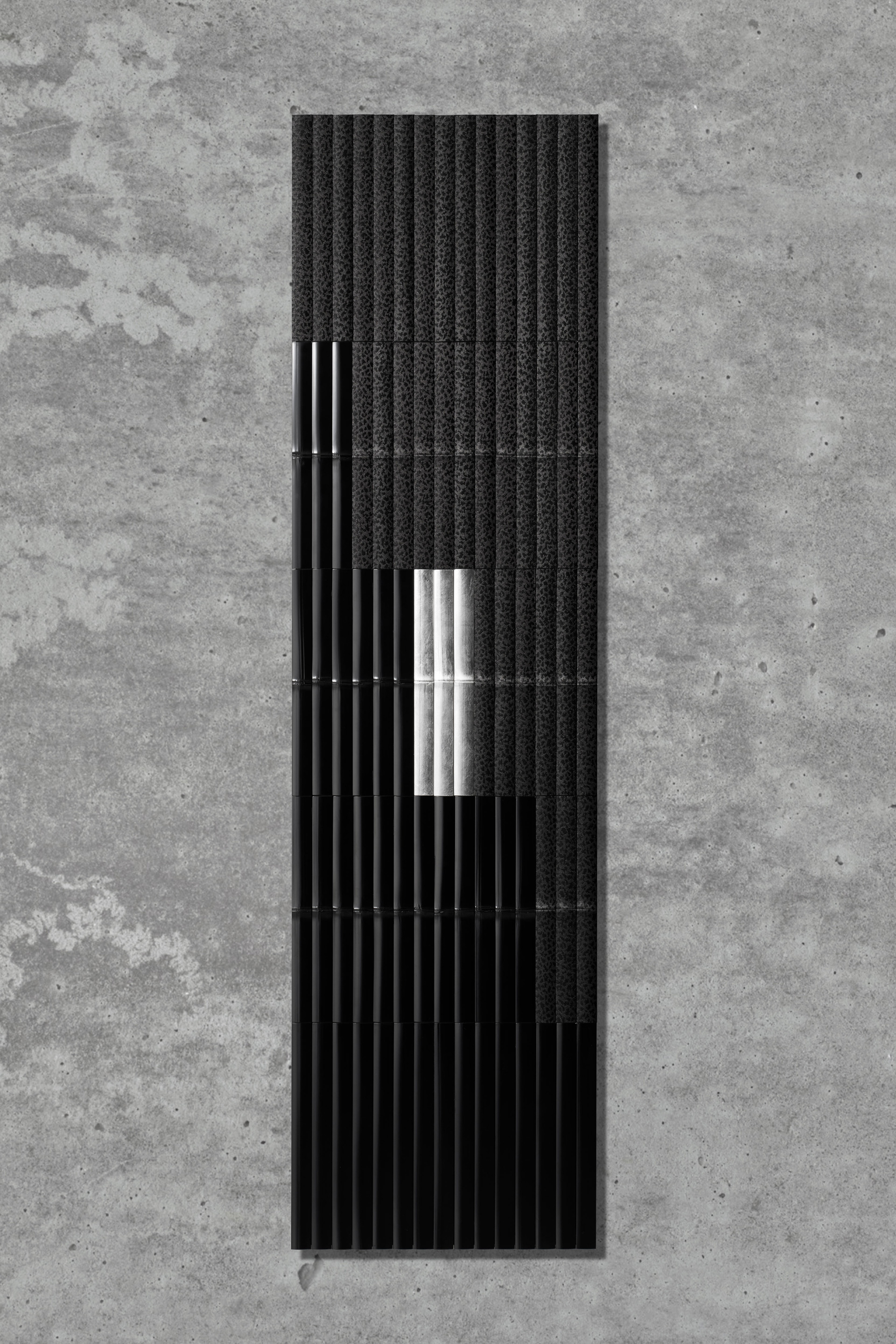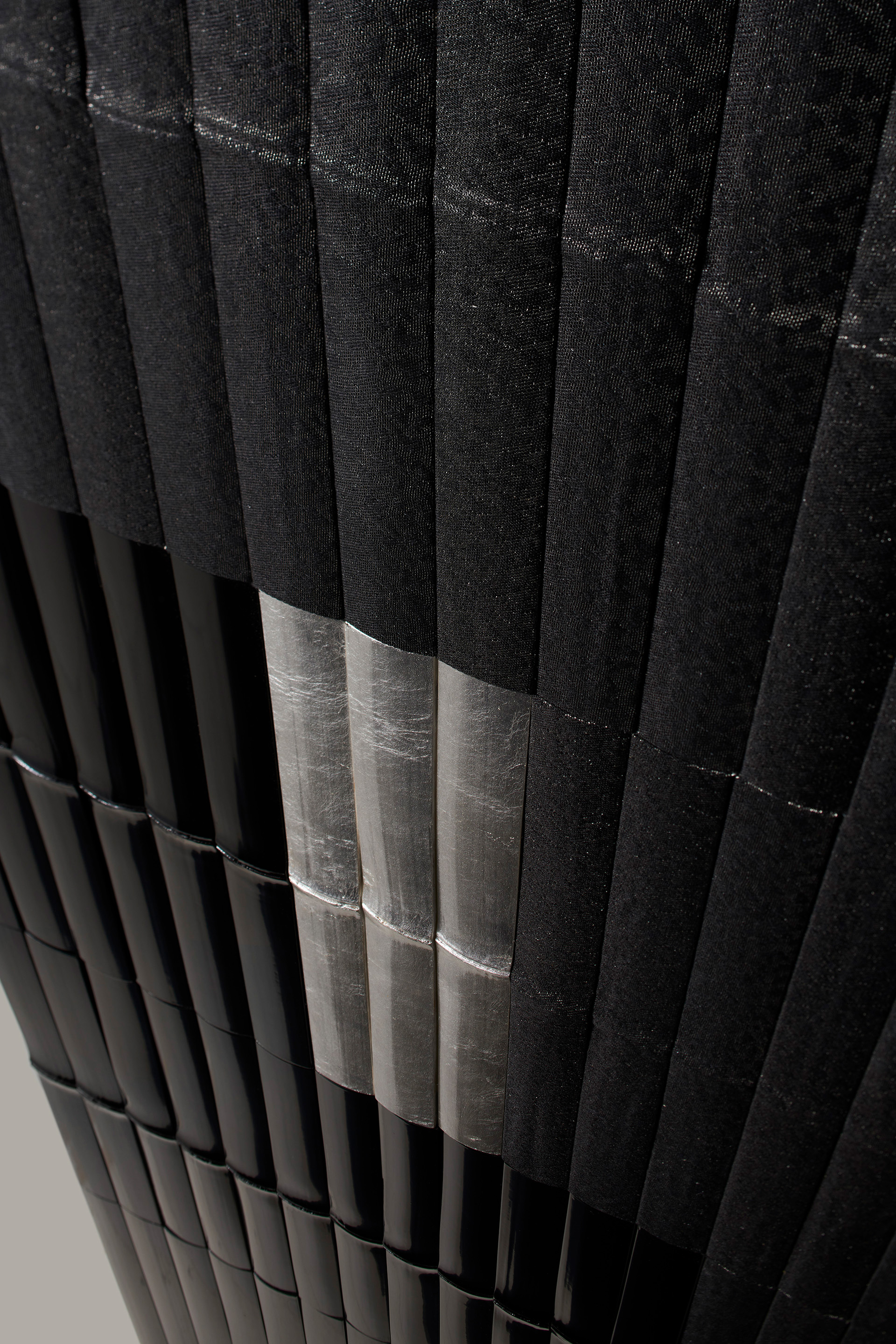 素材:白竹 漆仕上げ 銀箔 西陣織 技術:平割加工