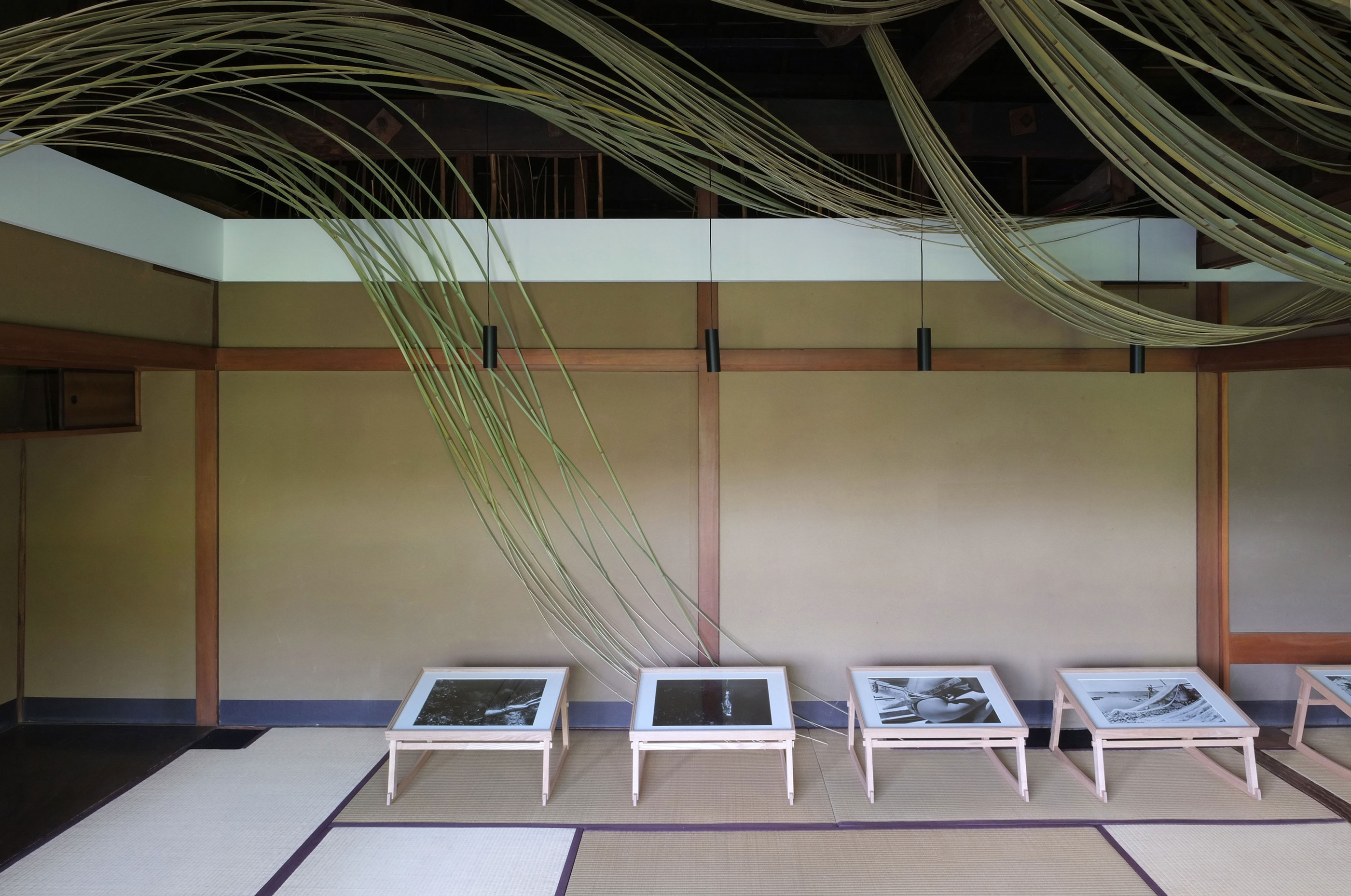 2015年に京都で開催された国際写真祭 「KYOTOGRAPHIE」のために、私たちは空間の特性と展示テーマに応える、竹の大規模インスタレーションを制作しました。会場は、祇園白川にある改修前の町家。解体によってあらわになった木造の骨組みは、時代の狭間にあるような佇まいを見せ、私たちにとってはキャンバスであり、共演者でもありました。使用したのは、長さ12メートルの青竹約300本。柔らかくしなる割竹を現場で一本一本試しながら曲げ、空間のサイズや素材の自然な動きに合わせて造形しました。